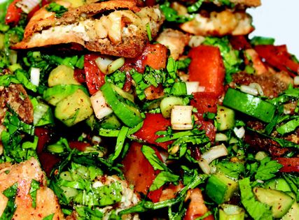 The word fattoush is closely linked to the old tradition of crumbling bread and using it in thareed dishes, with and without meat. Bread used for such purposes would be called fateet, or khubz maftout. From al-Warraq’s tenth-century cookbook, we learn that Arab medieval cooks sometimes served thareed as cold side dishes or salads, collectively called khal wa zeit (literally, vinegar and olive oil). They were prepared to accompany grilled meats. For