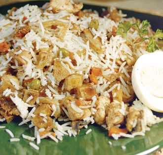By the thirteenth century, the Arab cooks had learnt how to cook rice the mufalfal way (with separated grains) as we love to have it today. The basic rice was cooked with meat and broth, sometimes enhanced with chickpeas or pistachios, or colored yellow with saffron. In some of the recipes, meatballs were added, in others, pulses, such as lentils or mung beans, were mixed with the rice (Ibn al-‘Adeem; al-Baghdadi). It was at this developed stage that rice dishes migrated eastwards wi