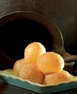 When deep-fried, the dough puffs up with a crispy, wafer-thin crust. In the past, the balls were filled with a mix of ground peanuts, olive seeds (larm yarn), almonds and sugar. Perhaps these were too rich, as they are now less popular. The hollow version, however, remains a firm favourite at some Hong Kong eateries.