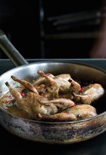 Although quails and pomegranates are used together in Persian cooking, this is a Spanish dish, whose origins lie in Catalunya. The sweet meat of the quails is offset by the bittersweet flavour of the pomegranates, and this simple combination of ingredients yields a surprisingly deep-flavoured dish.