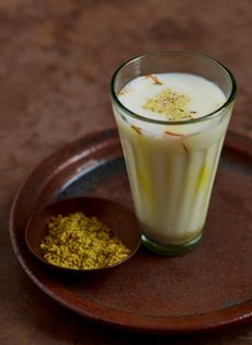This traditional drink, known as kesar pista or thandai, is traditionally served chilled, but Ayurveda reco