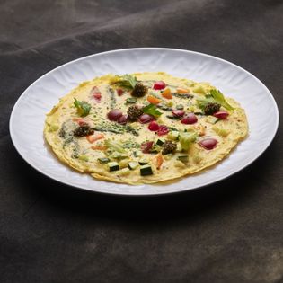 I like serving this frittata as a family-style brunch for friends and family. It’s a really nice dish to gather around the table for. And it’s very comforting. I use osetra caviar here, as opposed to beluga, because it’s less salty and has better flavor and more bite. These days, caviar comes from everywhere — the Columbia River, Italy, Bulgaria, and caviar farms all over the world — but the original caviar came from the Caspian Sea. If you aren’t sure which caviar to buy, simply ask someon