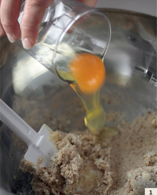 Soften the almond paste slightly in the oven or in the microwave (on “defrost” or at 500 W, stirring from time to time). Then incorporate the eggs into the almond paste one by one (1), mixing well each time.