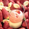 Prepare the strawberry cloud. Soften the gelatin in a bowl of cold water. Heat the strawberry coulis. Wring the excess water