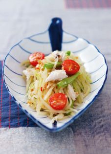 I’m madly in love with this salad, which is usually made with salted crab, but I use lump crabmeat in this recipe, which is a bit more user friendly. I tried this salad for the first time near Phang Nga Bay where they filmed the