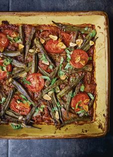 This is essentially a lamb mince bolognese baked with okra. It’s simple, comforting and completely delicious. Eat it as it is, with a salad alongside, or else with some plain rice or spaghetti.