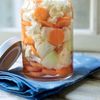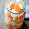 This recipe tastes very much like traditional pickles but with the added health benefit of fermentation. Children usually like this as it is mild and sweet. Make sure to use as little salt as possible with young children and infants should have no added salt at all. However, in a brine ferment too little salt will make the vegetables go soft rather than crisp. This pickle is great to serve with any dish and of course as pickles on a mezze board or cheese board. Unless I am making this ferme