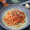 Pasta should have simple, humble ingredients and, when put together correctly, leave you speechless. This pasta is so simple but so effective. The spicy tomato sauce gets its flavour from the shrimp shells and naturally sweet tomatoes. The thick sauce is perfect for linguini noodles, and once nestled into pesto cream, this pasta checks off all the boxes.