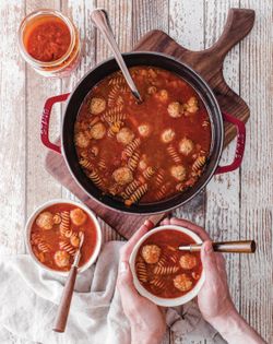 So much flavor in this one-pot wonder from only five ingredients! I can’t begin to tell you how important bone broth is for this recipe. It adds so much body and flavor! Combine that with some Rao’s Homemade®, mini meatballs, and lentil pasta, and this soup is nonna approved.