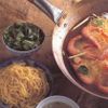 Meanwhile, mix together the lime juice, fish sauce and chilli paste. Stir this mixture into the soup when the prawns are cooked. Heat through for a minute or two, then serve