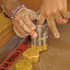 In the bowl of an electric mixer, combine butter, sugar, cardamom, and rose water, and mix for 2 to 3 minutes until white and creamy. Add 3¾ cups (375g) chickpea flour and mix until you have a dough (do not overmix).