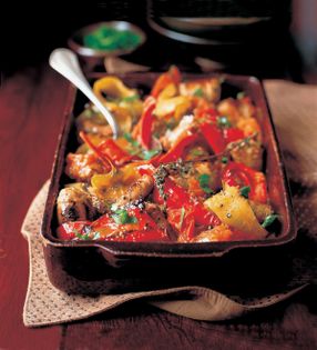 This dish, spetzofai pilioritiko, is a speciality of the Pelion, the beautiful mountain range that towers over the city of Volos on one side and the blue Aegean on the other, on the eastern coast of Greece. You will find spetzofai in all the region’s picture-postcard villages. Visit Milies, Tsagkarada, Zagora or Makrinitsa and you will inevitably find it bubbling in the kitchen, but it is also popular on all the nearby islands of Skiathos, Alonnisos and Skopelos.