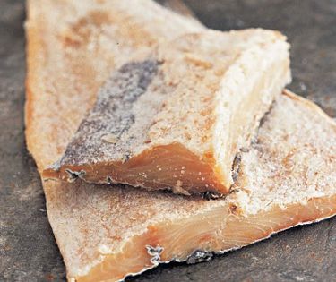 1 Put the salt cod in a large bowl and cover with plenty of cold water. Leave to soak in the refrigerator for 24-36 hours, changing the water at least three times to remove the salt.