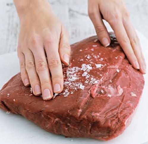 1 Rub the salt all over the beef, massaging it in. Leave at room temperature for 30 minutes.