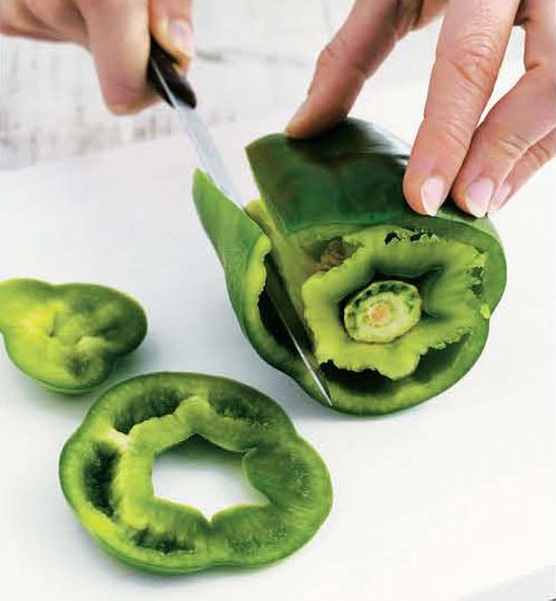 1 Chop the peppers, tomatoes and onion into 1cm/½in dice and place in a large bowl.