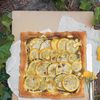 Lay a sheet of puff pastry on a greased baking sheet, & top it with the following: