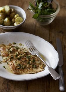 One of the best-known and loved flatfish of all, plaice can be easily identified at the fishmonger’s by its distinctive brown colouring and vivid orange spots. If cooked well, this tasty fish can be every bit as good as Dover Sole, and it is a much cheaper alternative, too. This recipe helps to bring out the natural meatiness of the fish and is one found on brasserie menus across France, perhaps not always with almonds, but certainly à la meunière. Who can resist it?