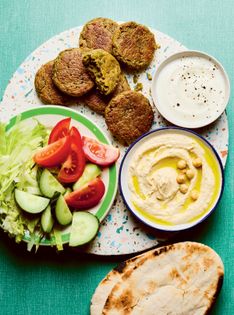 Falafel pittas are a great ‘build your own’ dinner, perfect for a relaxed gathering. These falafels can be made in batches and frozen, so you’ll only need to defrost them before cooking. Freeze them on a tray until the outside is frozen (about 30 minutes) then transfer to a freezer bag or storage container to fully freeze and store. The quantities below make 12 falafel, so depending on whether you’re serving 4 or 6 people, each person gets 3 or 4 falafel.