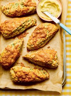 I made these scones just before I took a 16-hour train journey from London to Copenhagen – they made terrific train snacks and were still tasting great five days into our holiday. I love how vibrant the peas make the scones and their flavour really pops with the cheese and chives.