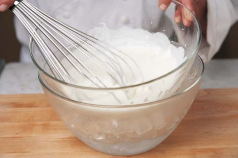 Set the cream-filled bowl into a large bowl with ice and, using a whisk, beat the cream until it begins to thicken. Add the confectioners’ su