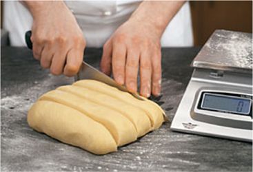 Divide the dough into 50-gram (1¾-ounce) pieces and place them on a well-chilled surface to keep the butter from melting into the dough.