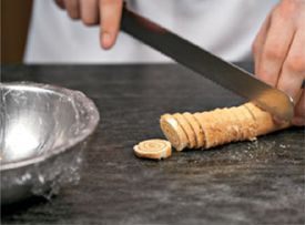 Using an offset spatula, lightly coat the surface of the biscuit with a thin layer of jam.