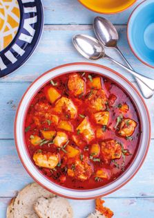 My fish stew, while headlining Tunisian inspiration, could appear on any Mediterranean or Persian plate. It’s a simple yet elegant dish with a little twist, providing a generous helping of goodness from fish, fresh herbs and spices that make it flavoursome without being overly complicated. I would recommend any white fish such as haddock, hake, cod or coley.