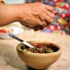 This is the most basic and most frequently served salad in Gaza, with a hot bite that makes it a fantastic accompaniment to meaty stews or rice dishes. Dagga, which is a variation of the word meaning “pounded” in Arabic (an irony that is not lost on Gaza’s inhabitants), is commonly scooped up with Arabic bread and has a consistency similar to that of a Mexican salsa.