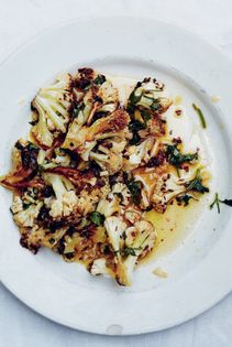 Surprisingly, this is one of our most requested recipes. It’s baffling to me because it’s one of the easiest things we make. The key is to get a char on the cauliflower, caramelizing the sugars and bringing out the vegetable’s natural sweetness. That’s easy to do in our 900°F [480°C] wood-fired pizza oven, but I’ve had excellent results making this at home in my 500°F [260°C] gas oven. I like to serve this as a starter with pizza. The same roasting technique works equally well with Romanesc