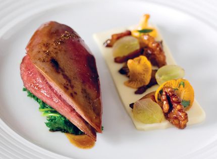 Plucking grouse was the first job I ever had in a kitchen and I can still remember the aroma, which still always excites me when the Glorious Twelfth comes around. Grouse is so special – one of my favourite game birds – really seasonal, with a most wonderful flavour, the aroma of heather, and a beautiful texture. I’m always particular what I serve with grouse to allow its true flavour to shine through. Celeriac purée is the perfect accompaniment. The walnuts and grapes balance the dish, wit
