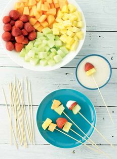 This creamy and slightly sweet fondue is reminiscent of cheesecake filling. Fruit kabobs empower kids to make their own fruit combinations, and it’s fun to dip kabobs in the fondue. Or enjoy the yogurt fondue with Crumbled Granola.