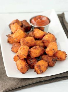 Bite-size Tater Tots, that classic from Ore-Ida, are a favorite of kids everywhere, and a school lunch-room staple. These sweet potater tots (we’re suckers for a good play on words) swap in more-nutritious sweet potatoes for the traditional white potatoes.