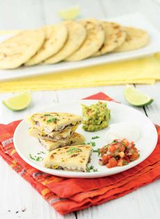 Salvadoran pupusas are thick corn pancakes traditionally filled with seasoned black beans, pork, and/or cheese. Our vegetarian version was inspired by our local farmers’ market, where a Latin American vendor offered up several varieties for the lunch crowd. They make for a filling meal that really satisfies.