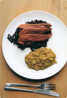 This is one of my favourite dishes. I received a few inflamed letters for parading it on television but not in the accompanying book What to Eat Now; it had been jammed into the series at the last minute, when the fine Italian paper was already rushing through the spinning printers. Well, here it is now. I’m happy to see that mallards are appearing more commonly in good butchers and some more adventurous supermarket branches. During the shooting seaso