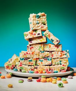 Ladies and gentlemen, I present to you: Snoop Loops! That’s right, scrubs. If y’all remember anything from my first cookbook, you remember that I love me some breakfast cereal, especially Fruit Loops. Instead of dropping these colorful loops in a bowl of milk, I gave them the marshmallow bar treatment.