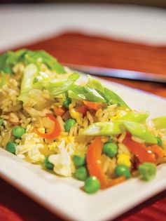 Prepare all of the ingredients as specified in the ingredients list. First, separate the cooked rice so that there are no clumps. Add a halfTbsp. of oil and the vegetables to a wok or large sauté pan. Stir-fry until the vegetables are well mixed and slightly tender (3-4 minutes). Push the vegetable