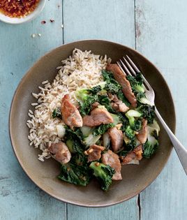 This hearty stir-fry is the ultimate one-dish meal. Swap in other quick-cooking vegetables, like broccoli florets, snow peas, or asparagus, if you like. Pork tenderloin is easier to slice for stir-frying if you chill it first in the freezer for about 30 minutes.
