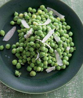 Here sweet green peas get a touch of tart luxury from a spoonful of crème fraîche. If you’re lucky enough to find fresh pea tendrils (also called pea shoots), cut about 4 ounces (125 g) of them into short lengths, blanch them for about 1 minute, and stir them into the peas.