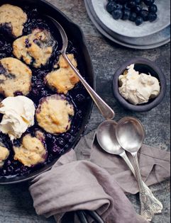 On my first trip to Nova Scotia on Canada’s beautiful east coast, I was served a blueberry grunt. Naturally, my first question was, ‘What’s with the funny name?’ Well, seemingly while the dumplings are cooking over the fruit filling, if you put your ear to the skillet, you will hear the blueberries begin to grunt! It’s very similar to a cobbler, but a grunt is traditionally cooked on the stove top and covered with a lid instead of baked in the oven.