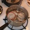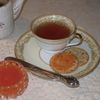 Thaw the peaches. Shred the orange part of the rind using the next to the largest holes on your grater and put the shreds into a saucepan. Remove the rest of the rind and the outer membrane. Cut between the dividing membranes and remove the fruit sections. Work over a bowl to catch any drips and include any juice squeezed from the membranes.