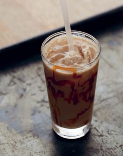 When I’m having a hard day, I make one of these. It’s the kind of drink that makes everything right in the world for a few moments. It works really well hot, but shaken over ice with the salty sweetness of the homemade caramel makes a fun and slightly frothy version of those overly sweet drinks that everyone is used to. The caramel sauce recipe below makes way more than you’d need for a few drinks (about 2 cups/430 ml), but make it anyway; the sauce is fantastic over bread pudding, pancakes
