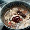 In a stone stockpot, add pheasant stock, red dates, taro and wolfberries and bring to a boil. Add all the fresh mushrooms, return to a boil and simmer for 12 minutes. Divide foie gras cubes into six soup bowls. Pour mushroom broth into each bowl and sprinkle with roughly ground pine nuts and sesame seeds.