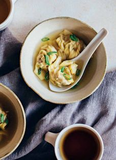 The wontons I grew up on are a combo of pork, shrimp and/or mushrooms. But feel free to omit any of the ingredients. And just like the street vendors I bought them from, I prefer to poach my wontons in the liquid instead of steaming them. I like to use thinner round Hong Kong-Style dumpling wrappers (they’re yellowish in color) or square wonton wrappers.