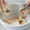 Baccalà is dried salted cod, which needs 4 days of soaking in fresh cold water to reconstitute it, changing the water two or three times each day. This is not an easy dish to make, but you may have eaten it at one of the many bars and street-food outlets in Venice, and wondered how it was made. Should you have difficulty in getting the fish going, you can put it in a bowl over a pan of simmering water and mash it with a fork to soften it enough to help you work with it. You could also make