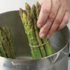 The area of Bassano del Grappa, in the Veneto, is famous for producing phenomenally good asparagus. This recipe makes a dish that is great for serving alongside cold poached fish or with meats such as thinly sliced roasted ham or rare roast beef. Try to pick asparagus spears that are not too thick, as they tend to have less flavour than those that have a firm stem of medium thickness. The olive oil needs to have a gentle taste without too much bite or pepperiness.