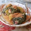This recipe from Friuli-Venezia Giulia has a dialect name that means ‘escaped birds’, as the swollen cabbage leaves are supposed to look like little birds hiding away from hunters’ guns. You’ll need only the green leaves from the cabbage, some of which will be large enough to cut in half, or even into quarters, once you have blanched them all. This makes a satisfying winter dish, and needs only a warm potato salad and some good red wine to make it into a delicious supper.