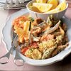 Any variation of ingredients, in any quantity and in any combination, is perfectly acceptable for the classic Campanian dish fritto misto, but it’s essential to have a range of different ingredients, and they should be as fresh as possible. This recipe uses a mixture of small fish, sliced vegetables and chunks of Italian cheeses, deep-fried in a simple batter. You will need either two deep-fryers or a large pan and a wok to cook this selection, and it is a good idea to make sure that your k