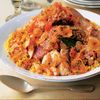 This dish comes from Trapani, where the salt flats of Sicily glisten under the sun. Couscous was introduced to the island centuries ago and was adopted so enthusiastically that it is now synonymous with Sicilian food. It is particularly popular in the west and on the outlying islets. Cooks often make couscous from scratch, using a bowl called a maffaradda to roll the damp semolina into tiny balls. This is a time-consuming task, so it is easier to use ready-made couscous.