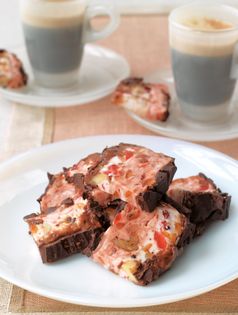 This extremely sweet dessert is best served with chilled semi-sweet white wine. It is not real nougat, but a variation on the theme. Making it takes skill and requires the use of a loaf tin or terrine, but the final result looks so spectacular that the effort is certainly worthwhile. It is important to use good-quality candied fruit. In Calabria, candied fruit nearly always includes thick pieces of the locally grown limes, oranges and tangerines, and is very special.