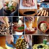 Get all your ingredients and equipment ready. Turn the oven on to 220ºC/425ºF/gas 7 and put 2 large frying pans on a medium heat. Put the thick slicing disc attachment into the food processor.